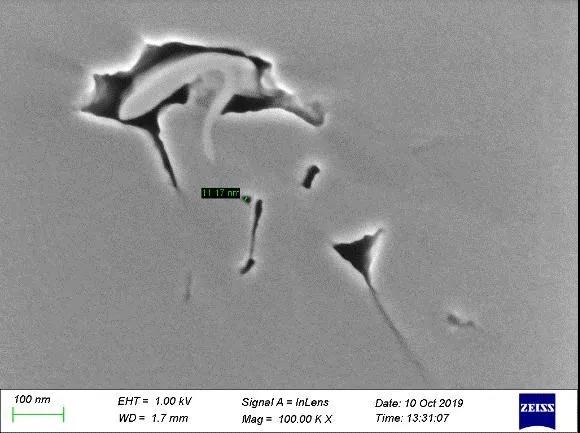 按照孔徑大小:孔徑小於2nm的孔隙稱為微孔,孔徑大於50nm的孔隙稱為大孔,孔徑在2-50 nm的孔隙稱為介孔(或中孔)。因為存在尺寸非常細小的孔隙,因此可以利用機械拋光+Gatan 685氬離子拋光+蔡司ZEISS Sigma500場發射掃描電鏡來觀察孔隙形狀及大小。如圖所示: