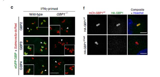 “並且通過招募GBP2-4組裝成GBP外殼,進一步促進了細菌表麵capspase-4的招募和激活,證實了細菌脂多糖膜的激活是開啟非經典炎症信號的第一步轉導途徑。