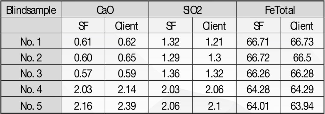 1)嚴重的滯後性:一(yi)個(ge)是(shi)取(qu)樣(yang)周(zhou)期(qi)的(de)滯(zhi)後(hou),分(fen)析(xi)結(jie)果(guo)得(de)到(dao)的(de)是(shi)一(yi)個(ge)取(qu)樣(yang)周(zhou)期(qi)內(nei)原(yuan)料(liao)成(cheng)分(fen)平(ping)均(jun)值(zhi),不(bu)能(neng)及(ji)時(shi)反(fan)應(ying)該(gai)取(qu)樣(yang)周(zhou)期(qi)內(nei)原(yuan)料(liao)成(cheng)分(fen)的(de)變(bian)化(hua),甚(shen)至(zhi)掩(yan)蓋(gai)了(le)該(gai)取(qu)樣(yang)周(zhou)期(qi)內(nei)原(yuan)料(liao)成(cheng)分(fen)的(de)異(yi)常(chang)變(bian)化(hua)。工(gong)程(cheng)師(shi)根(gen)據(ju)這(zhe)樣(yang)的(de)數(shu)據(ju)去(qu)調(tiao)節(jie)當(dang)下(xia)的(de)配(pei)料(liao)生(sheng)產(chan),是(shi)存(cun)在(zai)很(hen)大(da)偏(pian)差(cha)的(de);還有一點,是檢測結果的滯後,從取樣到分析,最快需要兩個小時,一般要3至4小時;因此延誤了工藝參數的針對性調整。這些是傳統測試方法的滯後性造成的問題。2)zaiquyangguochengcunzaichouyangwucha,quyangdeliangyijipinciyingxiangzheyangpindedaibiaoxing。chuantongjiancezhongdechouyangfangfa,daibiaoxingcha,bunengdaibiaozhengtiyuanliao,nanyifanyingquanbuyuanliaochengfen。tongshiquyang、製樣的過程都是人工來操作的,在這個過程中,受生產管理、操作習慣、責任心、隨機性等影響,存在一定偏差,受人為的影響的因素非常大。這些不足,極大地製約著生產的穩定性和燒結礦的質量。 因此,蔡司顯微鏡廠家建議改變傳統檢測方法,應用安全綠色的SpectraFlow在zai線xian礦kuang石shi品pin位wei智zhi能neng分fen析xi係xi統tong,提ti高gao原yuan料liao和he生sheng產chan過guo程cheng中zhong物wu料liao成cheng分fen的de穩wen定ding性xing,是shi提ti高gao鋼gang廠chang應ying對dui原yuan料liao波bo動dong風feng險xian和he人ren工gong操cao作zuo風feng險xian的de能neng力li,是shi幫bang助zhu鋼gang廠chang降jiang本ben增zeng效xiao的de一yi個ge有you效xiao途tu徑jing。